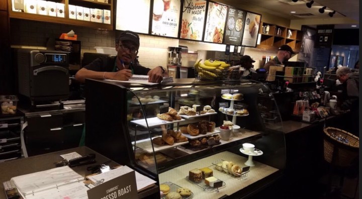 I got the security guard’s promise that I’d be able to get back to window 1 without having to wait in line and took the elevator down. Turning left out of the building, I found a Starbucks three doors away. I went back to the passport office to camp out, wondering how long it would take.