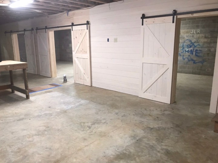 Midyear and in the home stretch with the home makeover, the basement came into my sights. I’ve loved having the basement space for our kids–big-wheeling, skating and scooting to their hearts’ content when it was too wet to play outside, using the concrete block walls like a backboard for tennis and soccer practice, scrawling their names with their friends with sidewalk chalk, the letters now smudged and fading. A broken ping pong table in the corner reminds me of ‘Round the World tournaments with youth groups, which is what finally broke the table in one epic finale.